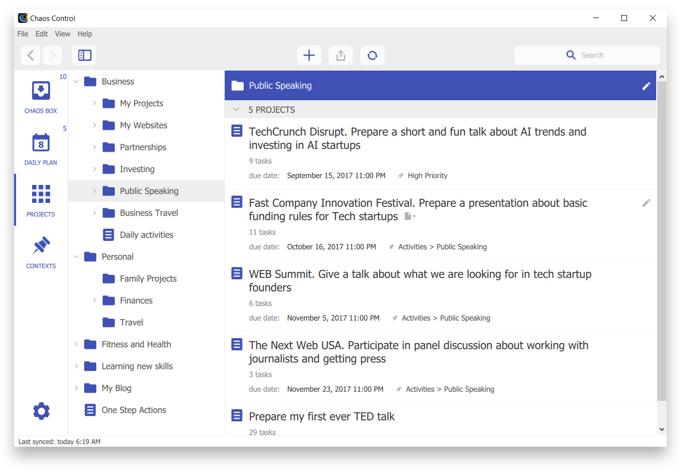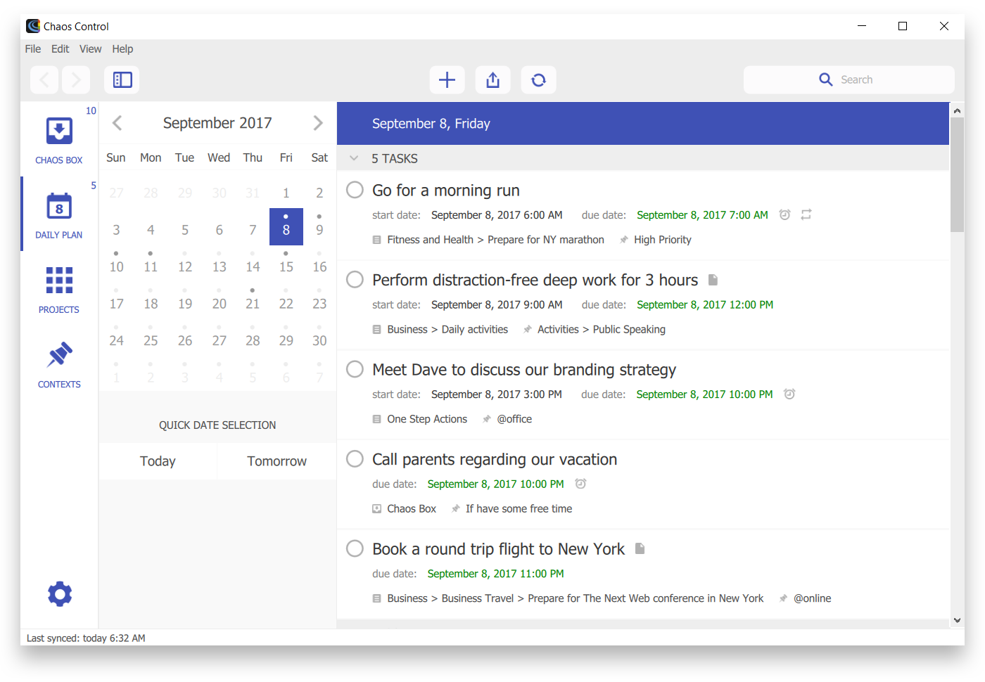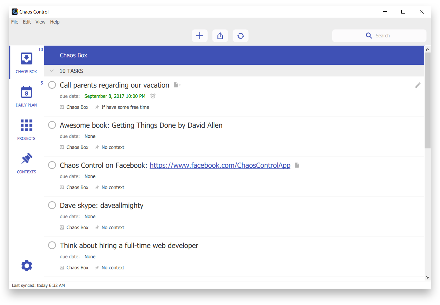 We are happy to introduce a full-featured Windows app that does everything you expect from Chaos Control: handling your goals, task management, setting reminders, planning and much more. This is a perfect tool for improving your productivity, organisation and creativity.